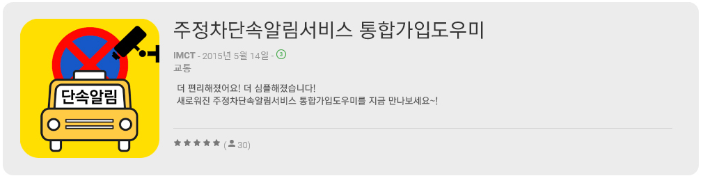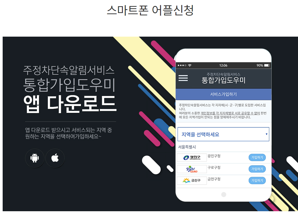 앱을 통해서 주차단속 알림서비스 신청을 하고 싶은 분들은 앱 스토어에서 '주정차단속알림서비스' 앱을 다운로드하셔서 신청하시면 됩니다.